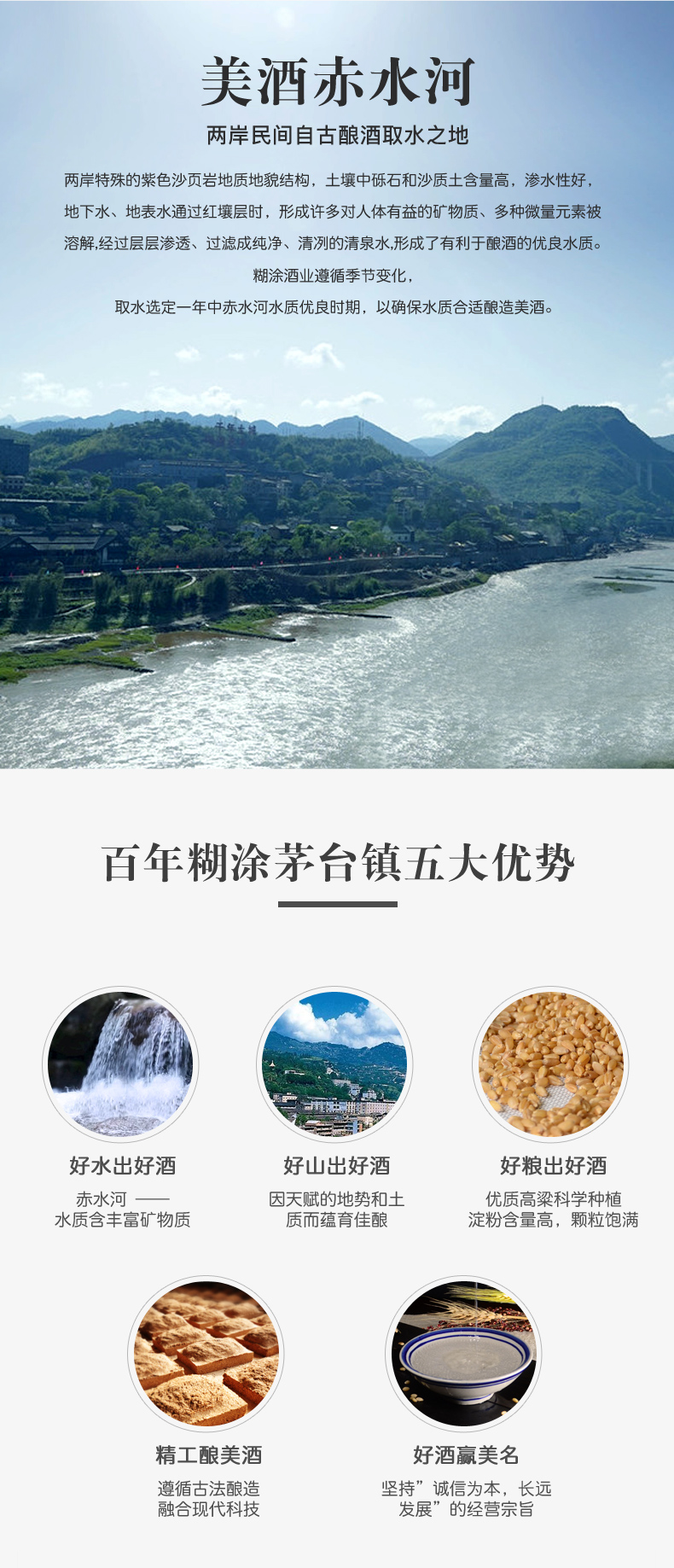 这款“百年糊塗酒”系列, 精品D1高粱小酒,精选本地红缨高粱和小麦,取水源自赤水河,水质纯净,矿物质含量丰富。传承创新,精工酿造。采用固态粮食发酵工艺,随着时间的推移酒体越醇厚丰满,喝起来幽雅细腻,回味无穷。