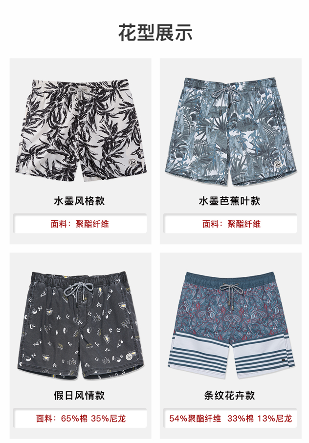 这款短裤是四分裤造型,裤腿在膝盖靠上位置,比较清凉。内里带有三角网内衬,防止坐或躺的时候走光。腰带为抽绳松紧设计,不容易勒腰。两侧加后袋,总共三个口袋,方便随身携带物品。短裤印花图案采用活性染料,图案清晰不易褪色。而且短裤在臀部位置和口袋兜底有排水孔,可以直接下水,当泳裤穿。