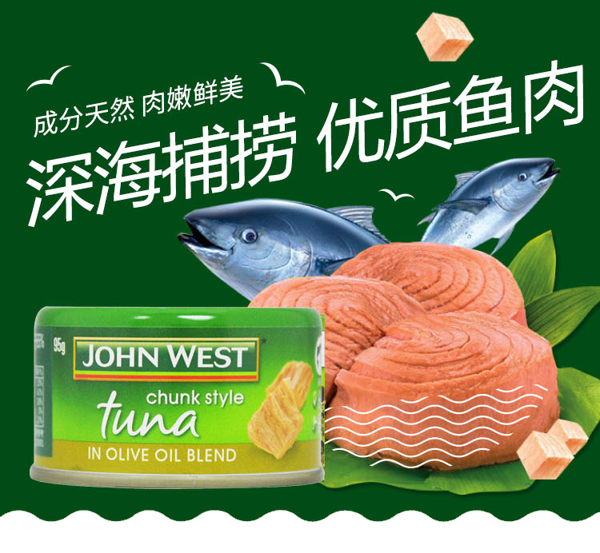 JOHN WEST是亨氏旗下的一家著名食品厂商,也是仅次于Princes品牌的英国第二大金枪鱼供应商。JOHN WEST品牌的各种鱼罐头早已成为了澳洲各大超市里面最热销最受欢迎的商品之一。