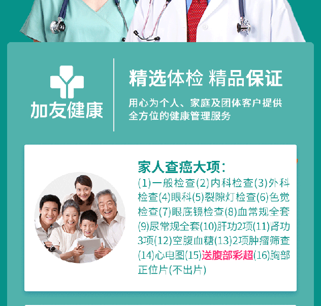 天猫加友医疗服务专营店1099元,可领800元优惠券,实付299元到手, 送90元腹部彩超,美年大健康是中国体检行业A股上市企业,是清华大学、中国石油、中国人寿的合作单位,体检中心遍布全国,质量还是靠谱的。