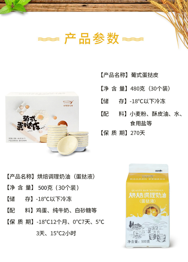 蛋挞皮口径约7cm,采用益海嘉里小麦粉、酥皮油等制作而成,起酥效果好,层次分明,不易碎渣;蛋挞液采用鸡蛋、纯牛奶等制作而成。美味可口,营养价值高,还可自己随心搭配葡萄干,蔓越莓,或冰激凌等多种吃法。制作简单方便,在家就可轻松做。