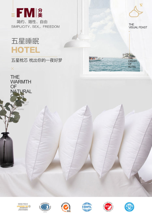 希尔顿酒店款羽丝绒枕头,进口羽丝绒,护颈亲肤舒适,按压回弹不变形,甄选纯面料,亲肤,透气排汗吸湿,三层立体填充,蓬松柔软,贴合颈部曲线,舒服护颈,提高睡眠质量。