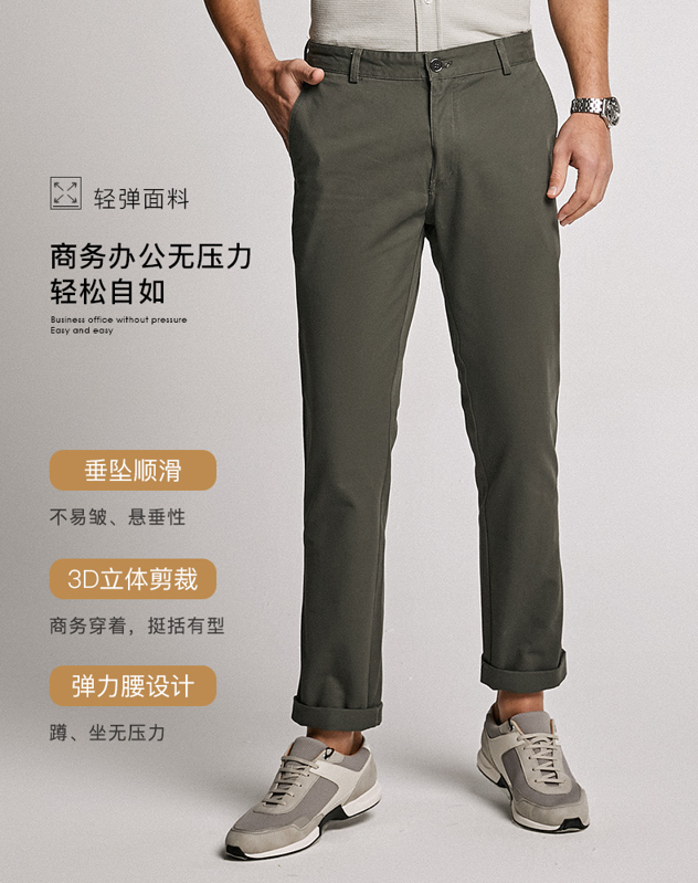 谱拉歌世 男士 P.M系列 商务休闲直筒裤,采用纯棉面料,穿着舒适透气,悬垂顺滑。设计上增加前后浪差,提臀效果更明显,大腿适当调整修身而不紧身;前片窄后片宽设计让裤形更加利落显瘦,裤脚是适当收口另双腿更显修长,上身非常帅气。