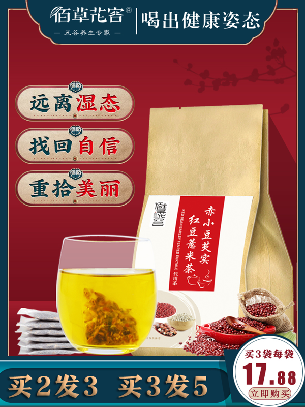 这款佰草花容 红豆薏米茶,配方成分是精选黄苦荞、老树采栀子、新鲜大麦、新鲜赤小豆、五年老陈皮、当年芡实、新鲜红豆、新鲜薏米仁,规格是5g*30包,独立小包装。
