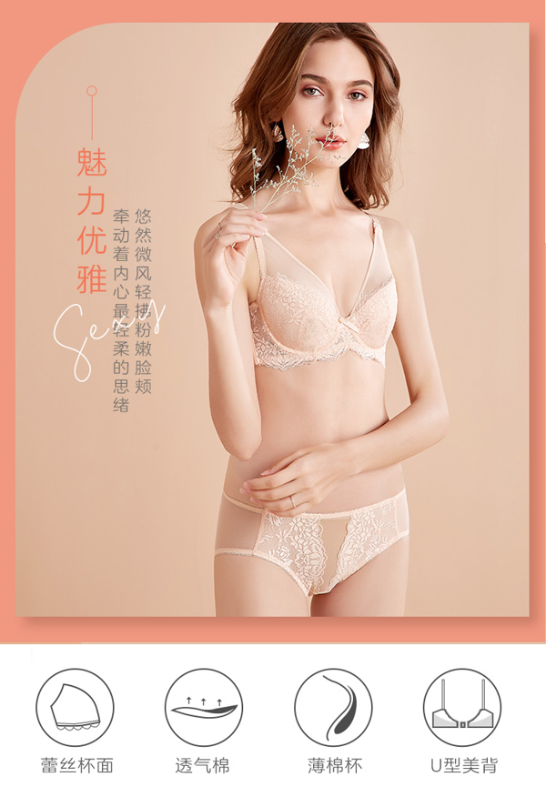 这款欧迪芬 薄款聚拢蕾丝文胸,蕾丝杯面融入传统的剪纸工艺刺绣,剑仙女性魅力。纯棉杯里,轻薄透气,健康舒适,内设插片袋,可自由添加插垫。优雅蝴蝶结装饰,更显时尚青春。多排扣设计,可自由调节围度。U型后背,3D聚拢收副乳,穿出性感曲线,