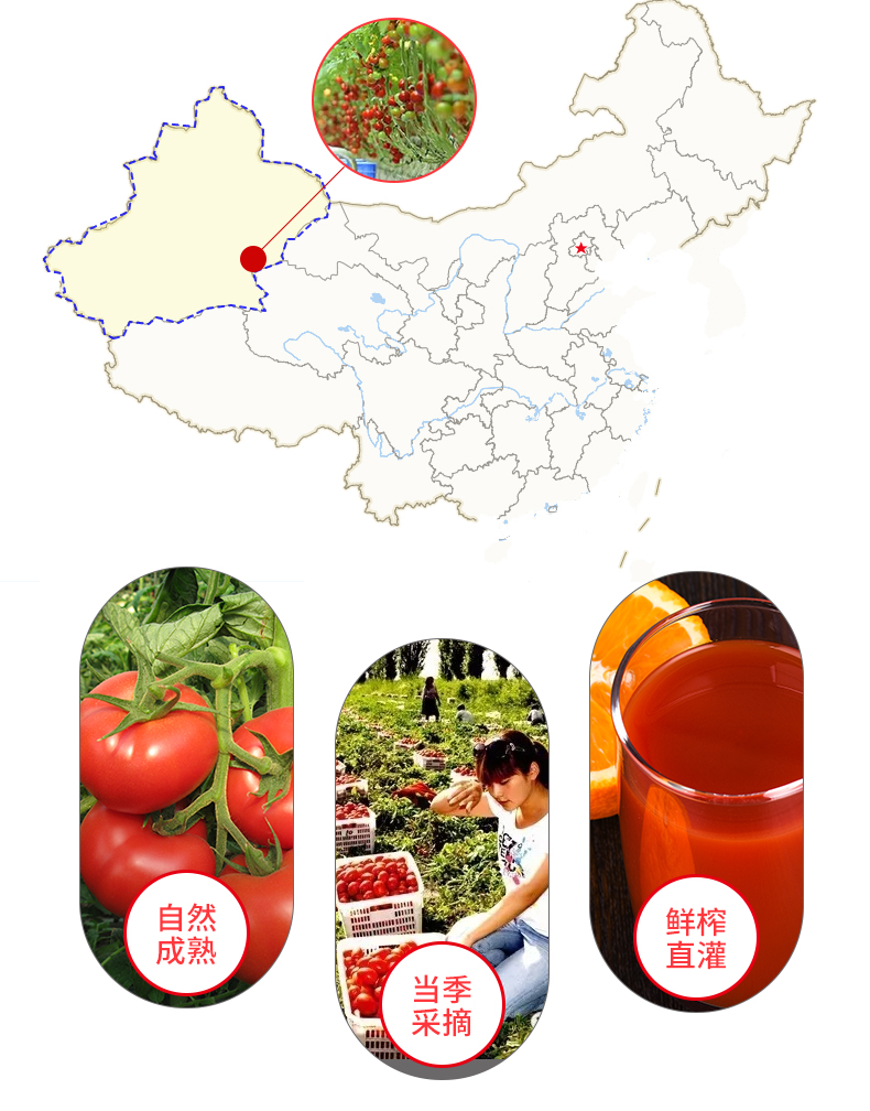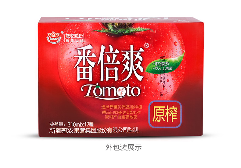 这款番倍爽 新疆新鲜无添加原榨番茄汁是一款纯果蔬汁,选用新疆巴州的的优质番茄,运用冷破碎技术鲜榨成汁,果酱细腻、番茄红素充足、味美醇厚、无气泡、无防腐剂、0脂肪,营养成分高。
