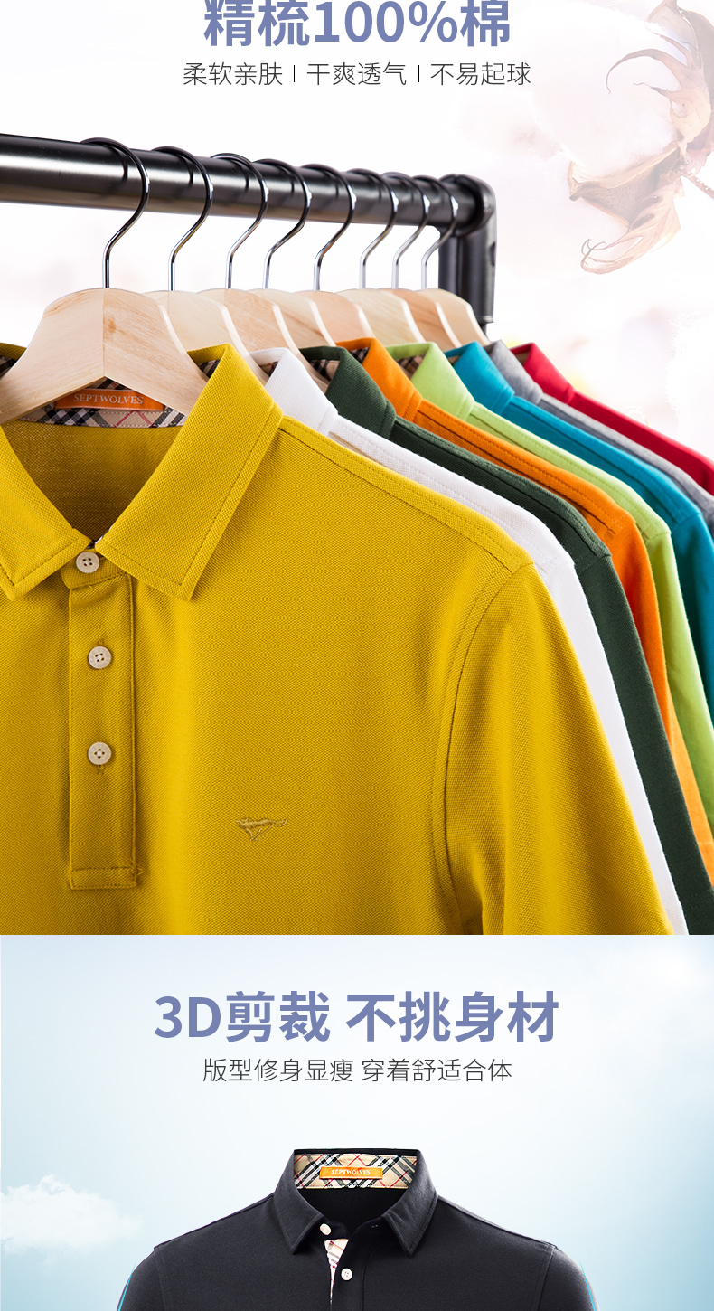 这款七匹狼Polo衫为100%精梳棉面料,并采用珠地网眼工艺织成,这种面料的特点是表面为疏孔状,犹如蜂巢,比普通纯棉更吸湿透气,干爽不贴身,即便天气温度过热,仍然给人舒适的触感享受。而且不易褶皱起球,打理起来方便。因为面料的优越性,很多国际大品牌的衬衫、Polo衫都使用珠地棉制作。