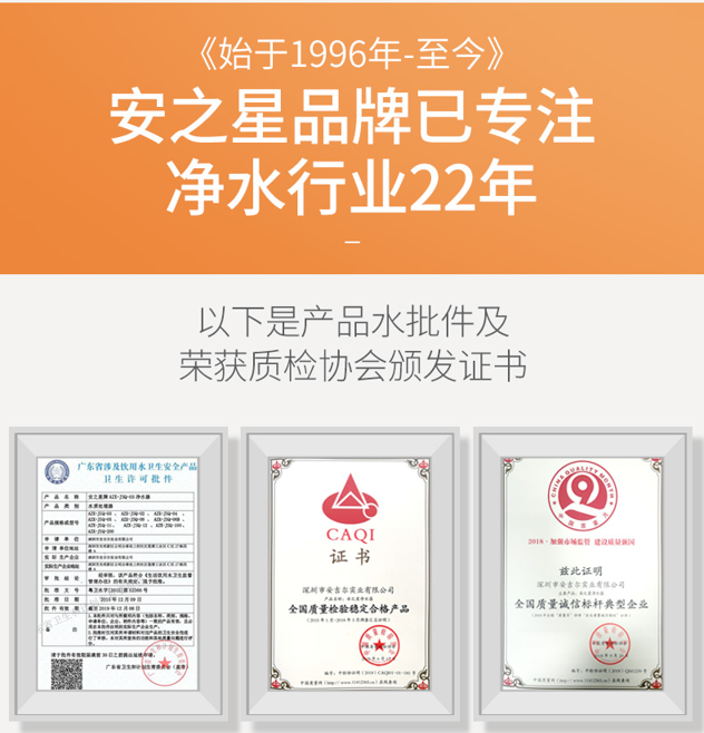 一机五芯,可用两年。这款安之星前置水龙头净水器,净水和原水的双出水设计,满足不同水质的要求,七级过滤,滤芯可清洗。机身是食品级ABS透明材质,滤芯状况清晰可见,便于随时清晰更换。