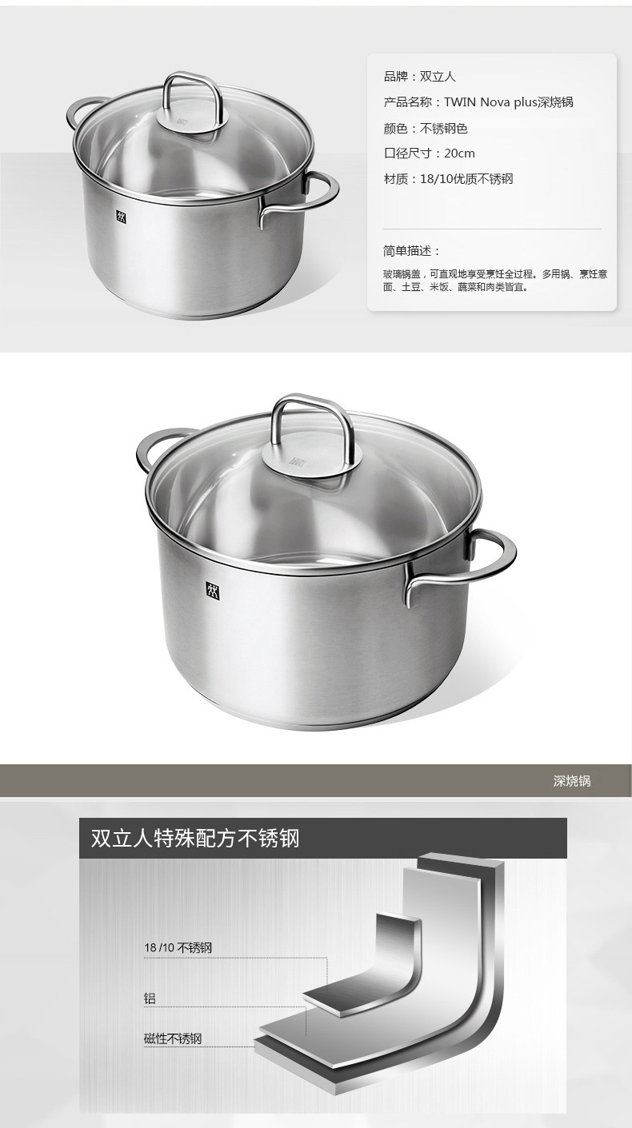 此款加深不锈钢汤锅,德国技术开发和生产,采用18:10配比不锈钢生产,复合锅底,电磁炉燃气灶通用,加厚质感耐用,钢化玻璃锅盖,不锈钢包边,品质之选,自用送人都不错。
