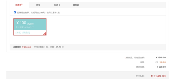 京东商城现在售价3248元,现在领取100元优惠券,到手价3148元,有需要的网友可以看看。