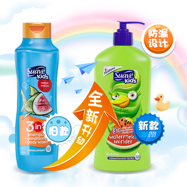 天猫联合利华母婴海外旗舰店39元,第二件0元,可领5元优惠券,拍2件实付34元到手。Suave丝华芙作为美国知名的亲民洗护美容品牌,其儿童洗护产品深得美国妈妈喜爱。这款儿童洗发护发沐浴3合1,规格:531ml,西瓜香型,小孩子喜爱的味道,不再反感洗刷刷啦,无泪配方,防过敏性,经皮肤科专家测试,可放心给宝贝使用。温和的配方令宝贝的头发柔顺不打结,同时让皮肤保持柔软和光滑,用清水冲洗即可清洁。
