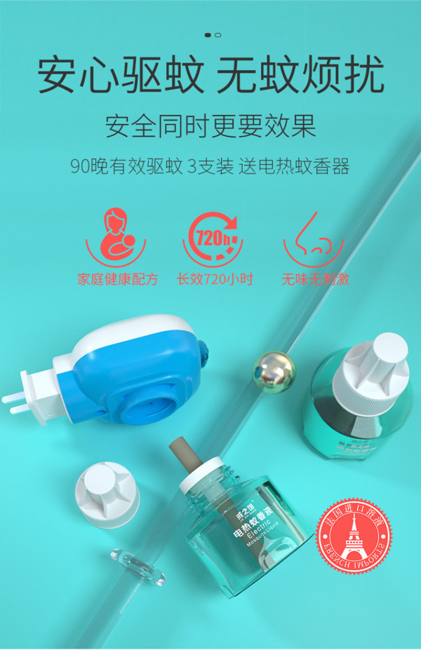 进口法国道达尔溶剂,鲜粹精华驱蚊液,原木导芯棒,安全无刺激,无烟无灰,长效驱蚊,保护宝宝不受蚊虫叮咬,一插一按操作简单又安全给你一晚金质睡眠马上用领券链接点此