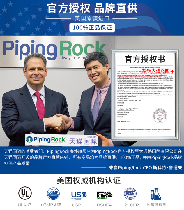 天猫pipingrock海外旗舰店129元,可领30元优惠券,第2件0元,拍2件实付99元到手,单瓶规格为120粒,每粒含800mg东革阿里粉,食用方法为:2粒/日。PipingRock与大众熟知的自然之宝、普丽普莱等保健品品牌同属于全球最大的膳食补剂生产商和销售商NBTY旗下。