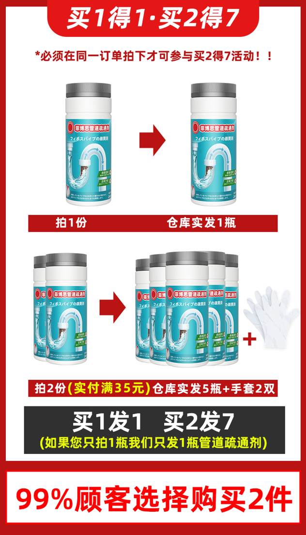 天猫菲博思家居专营店19.9元,下单立减4.8元,可领10元优惠券,实付5.1元到手,260g一瓶装,有拍2发7活动,25元到手5瓶加2双手套更实惠。采用多种表面活性剂,浓缩固体配方,一瓶抵三瓶,强力溶解附着在管道内壁上的油渍、食物残渣、毛发等粘稠污物,迅速净化、抑制细菌滋生、清除异味,防止管道老化堵塞,疏通新潮流。