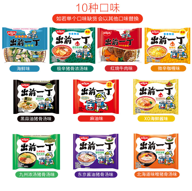 出前一丁是日清食品的即食面品牌之一,意译为“速递一份”,是日本最出名的方便食品,属于日清旗下产品。于1968年在日本推出,并于第二年进入香港市场,至今仍非常受欢迎,虽然价钱较贵,但部分人仍指定只吃出前一丁的即食面。因为受到香港民众的狂热喜爱,最终与本土品牌“公仔面”共分方便面市场。