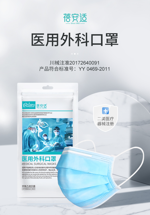 天猫蓓安适旗舰店49.8元,可领20元优惠券,实付29.8元到手。环氧乙烷灭菌型口罩,执行标准YY0469-2011,川械注准20172640091,正规医用外科口罩,药监认证,三层过滤效果好。