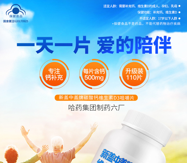 天猫花果山保健食品专营店75元,可领10元优惠券,实付65元到手,110片,送钙咀嚼片30粒。哈药集团旗下新盖中盖,多年老牌,品质放心。广告词小编现在还记得:过去我经常补钙,可是一天三遍地吃,麻烦!现在,有了新盖中盖高钙片,一片顶过去五片,一口气上五楼,不费劲。