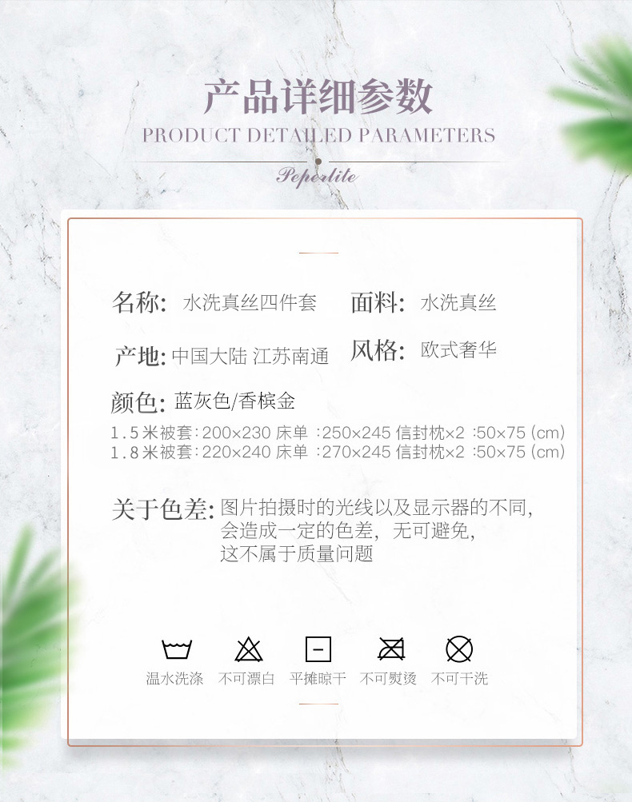 这款法国DEPERLITE 黛思慕尚 夏天水洗欧式冰丝四件套,法国水洗冰丝面料,透气抗菌排湿;采用更复杂的缎纹工艺织造,相较于平纹与斜纹纺织,面料光滑有质感,质地更加轻柔贴肤;自带清凉感,睡感舒适;活性透染,清洗不褪色。