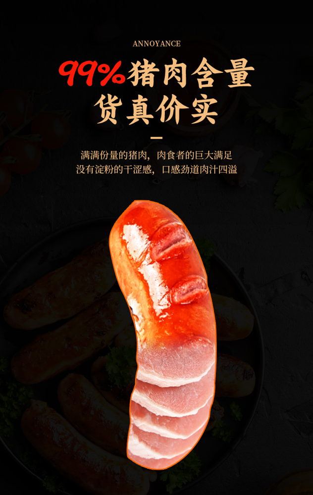 天猫罗名宇食品旗舰店39.9元,可领10元优惠券,实付29.9元到手,第二件半价,拍2件49.8元更划算,1袋1.4斤每根70克大烤肠,纯猪肉肠肉含量99% 。满满份量的猪肉,肉食者的巨大满足。没有淀粉的干涩感,口感劲道肉汁四溢。纹理清晰可见,入口肉香十足。