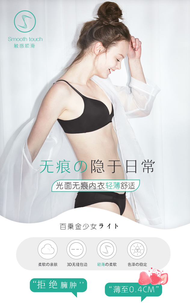 这款属于轻盈系列,采用3D spacer fabric面料制作而成,整件文胸克重仅18g/m2,吸湿透气兼顾柔软度和自然的手感,精细的纤度纸张状薄透的质地,看似薄透的材料却出人意料的强韧和耐磨。无感穿着,无痕无钢圈,速干面料,高弹超柔软,色彩也很清新,简约百搭,适合秋冬~