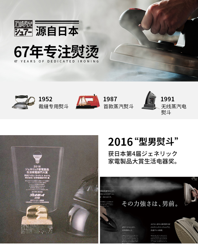 SURE/石崎秀儿创立于1928年日本东京,是日本拥有电热产品专业技术的企业之一。为日本铁道部及国防部等政府部门提供相关产品,与松下、东芝、日立均为战略合作伙伴,其电磁炉、电熨斗、面包机等产品,曾获得2016年日本生活家电大奖。