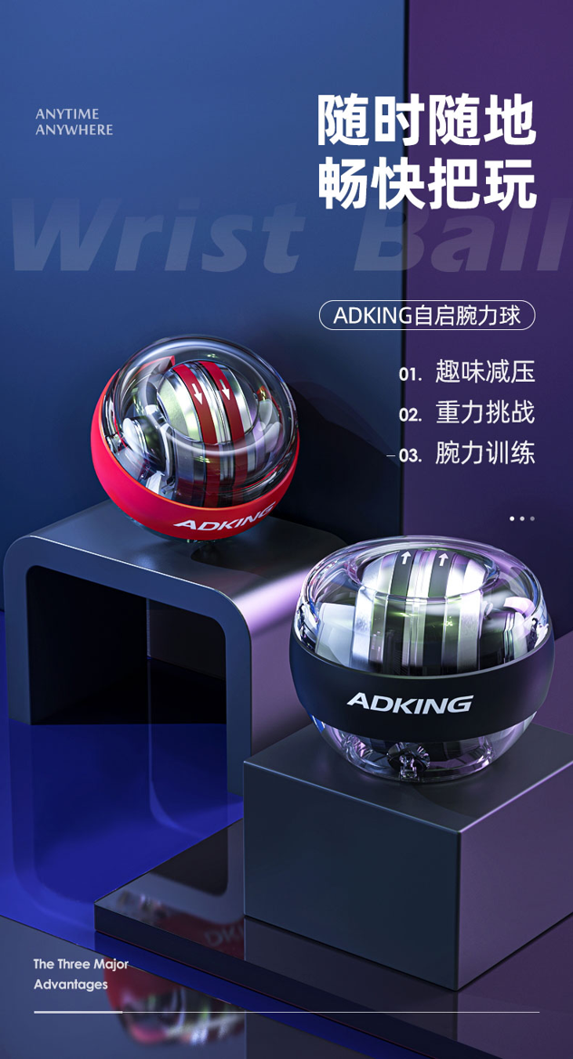 腕力球是腕力健身球的简称,也称强力球、魔力球、陀螺球、超级陀螺,最初是台湾人发明的,在台湾比较流行,后又传到欧美国家,并逐渐在全球推广开来。腕力球纯机械,不用电池和任何电源,没有电磁辐射,运用陀螺仪和角动量守恒原理,在惯性定律和角动量作用下持续旋转并产生强大的力量,使手腕、手臂处于自主运动状态。