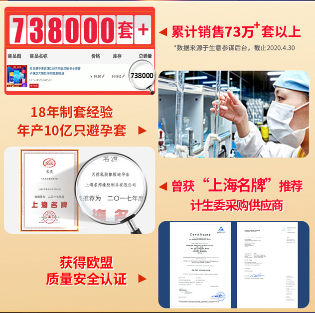 名流安全套是上海名邦橡胶制品有限公司旗下品牌,作为国内为数不多的集产品研发、生产、销售于一体的高新技术企业,名邦一直致力于通过提供创新性的产品和解决方案提升国人两性生活质量。自2002年创建以来,名流也以其亲民的价格,优质的产品品质受到广大消费者青睐。