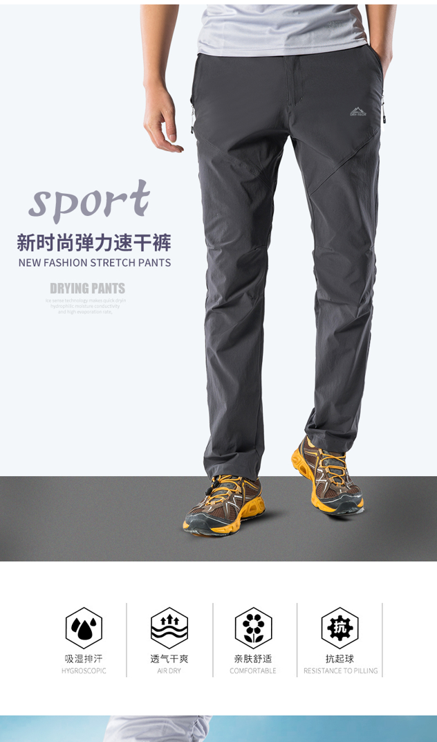 这款速干裤的里料为尼龙材质,外层面料为聚酯纤维材质,能快速吸汗速干,外层面料可抵挡小雨或水溅,面料四向弹力,横向纵向伸展自如,裆部经过双线加固,穿着安全,膝部还专门设计了不同的面料,防止久坐后膝部突出的情况。