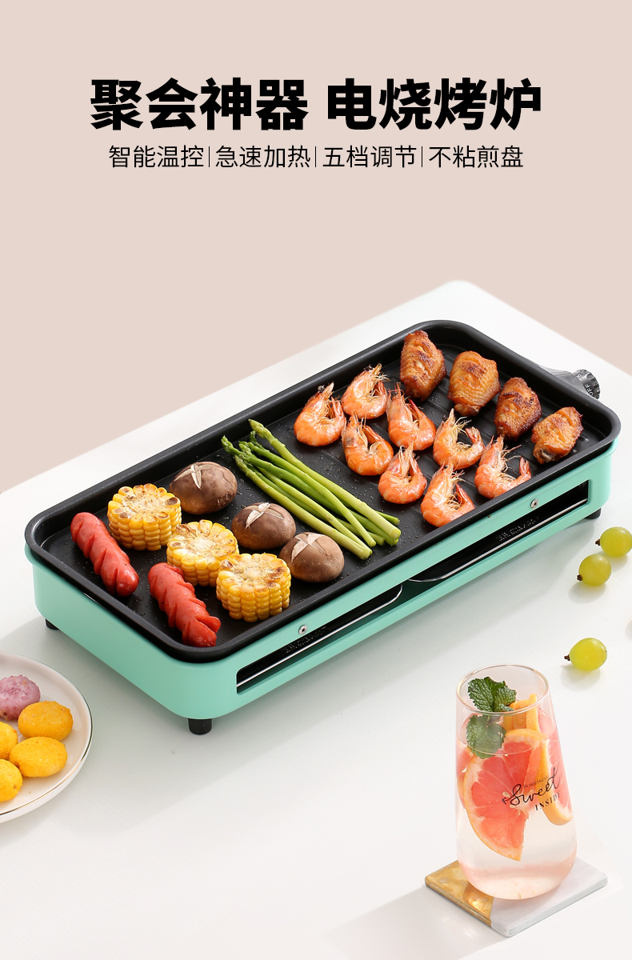 这款原始人烧烤架,1500W大功率,U型不锈钢发热管,快速升温,受热均匀;五档调温设计,自由控制温度,适合各类食材使用,尽量少产生油烟,能满足5人份使用。底部有接油盘,排油排水不用愁,方便清洁。安全方面,底部隔热防滑胶垫设计,更为安全,防止倒塌或烧伤桌面。