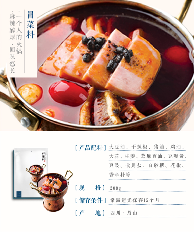 这款眉州东坡酒楼 冒菜底料,精选子弹头辣椒、小米辣椒、灯笼辣椒、桶装植物油、王家渡手工豆瓣酱、汉源花椒、天然香辛料制成,自动控温滚筒式炒锅,均匀炒香熬制而成,麻辣鲜香。