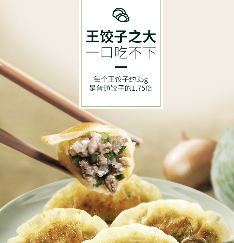 1.个头大,单只有35g,是一般饺子的1.75倍,日常500g的思念或者三全,我要一袋半才能吃饱,这个一袋就行,可能是给胃形成了错觉吧,吃了这么多