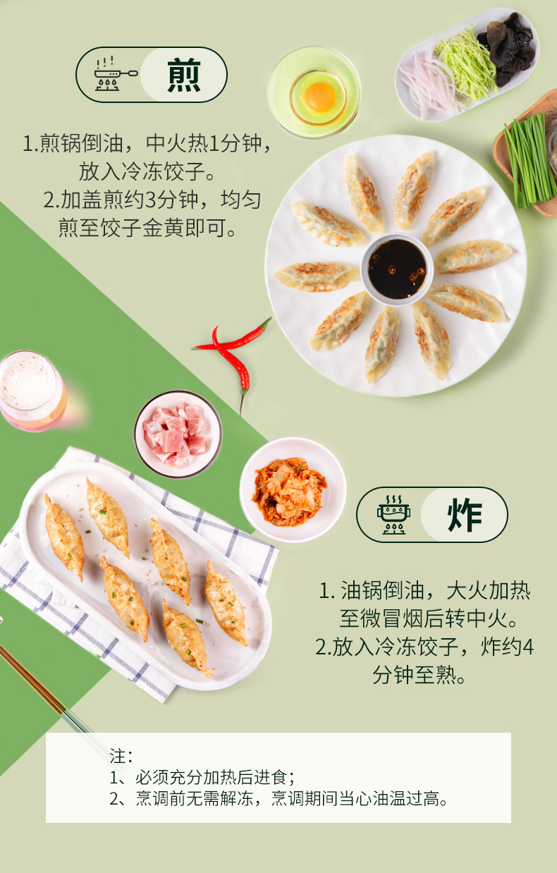 2.是熟冻的,意思是煮半熟后再冻起来的,自己煮的话比较容易熟,还能蒸煎炸都行,吃法多样,不需要专门买蒸饺或者煎饺了。
