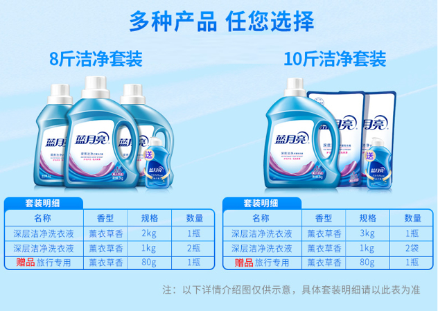 天猫至尊洗护旗舰店99.9元,可领40元优惠券,实付59.9元到手,套餐内包含3kg*1瓶+1kg*2袋装,赠80g旅行装,共10斤,足够一年用量,蓝月亮旗下旗舰店发货。蓝月亮深层洁净洗衣液,添加了高效洁净因子+去污增效因子,能深层强效自然去油污、汗渍、黄斑,比普通款洗的更干净,尤其是对于白衬衣衣领等的清洁帮助更大。低泡配方,易于漂洗,中性温和无刺激,使用不伤肌肤,不含荧光剂、漂白剂,薰衣草香,清新好闻。
