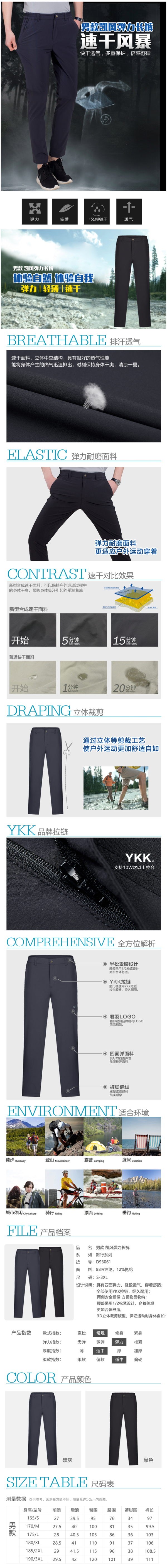 这款君羽男户外速干裤,是19年的新款,属于旅行系列,采用弹力防泼水面料,适合春夏秋季节外出徒步、旅行或日常城市穿。