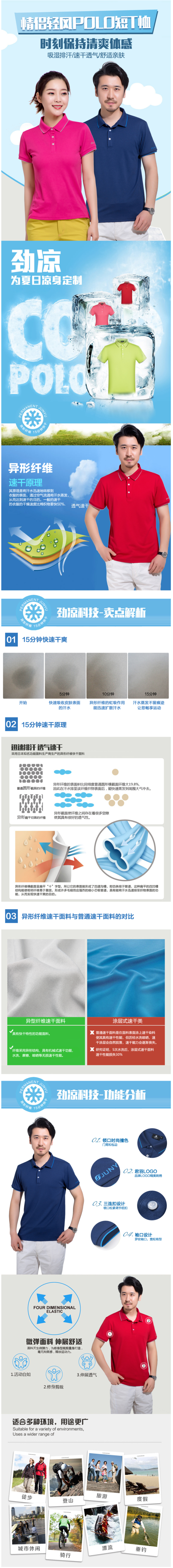 这款君羽Polo衫是2019年的新款,采用从日本进口的速干面料,虽说都是100%聚酯纤维,但是其纤维采用异形结构设计,具有更好更快的速干透气效果,无论是水洗、摩擦、晾晒等都无损其性能。