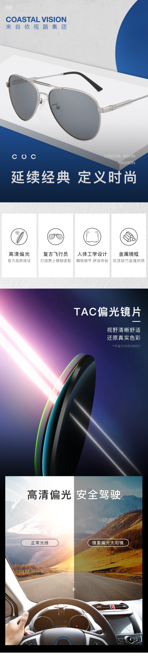 源自2000年创设于北美的著名眼镜电商平台Coastal.com,隶属于全球著名的眼镜集团依视路(Essilor)。这款CVS5036 中性太阳镜,飞行员款设计,镜片为TAC偏光材质,可以有效抵御强光和紫外线干扰。领券链接点此