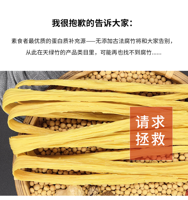 腐竹其制作工艺分为7个步骤:泡发黄豆、磨浆、煮浆、手工起皮、烘干、质检包装,出库一共需要7天,店家郑重承诺,如果你购买了的腐竹发货日期超过60天,双倍赔偿。