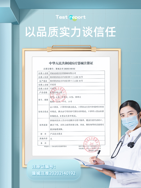 外科口罩父母更安心,器械批文,环氧乙烷灭菌,25g/m²加厚熔喷布,细菌过滤大于99.3,远远高于行业标准规范,加厚三层,更严苛的防护!