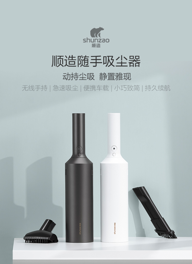 顺造 手持无线吸尘器,小米有品众筹爆款,上市已售25900+,外观设计让人眼前一亮,整体看起来就像是一个红酒瓶。平时不用的时候还可以放在家里作为装饰品。