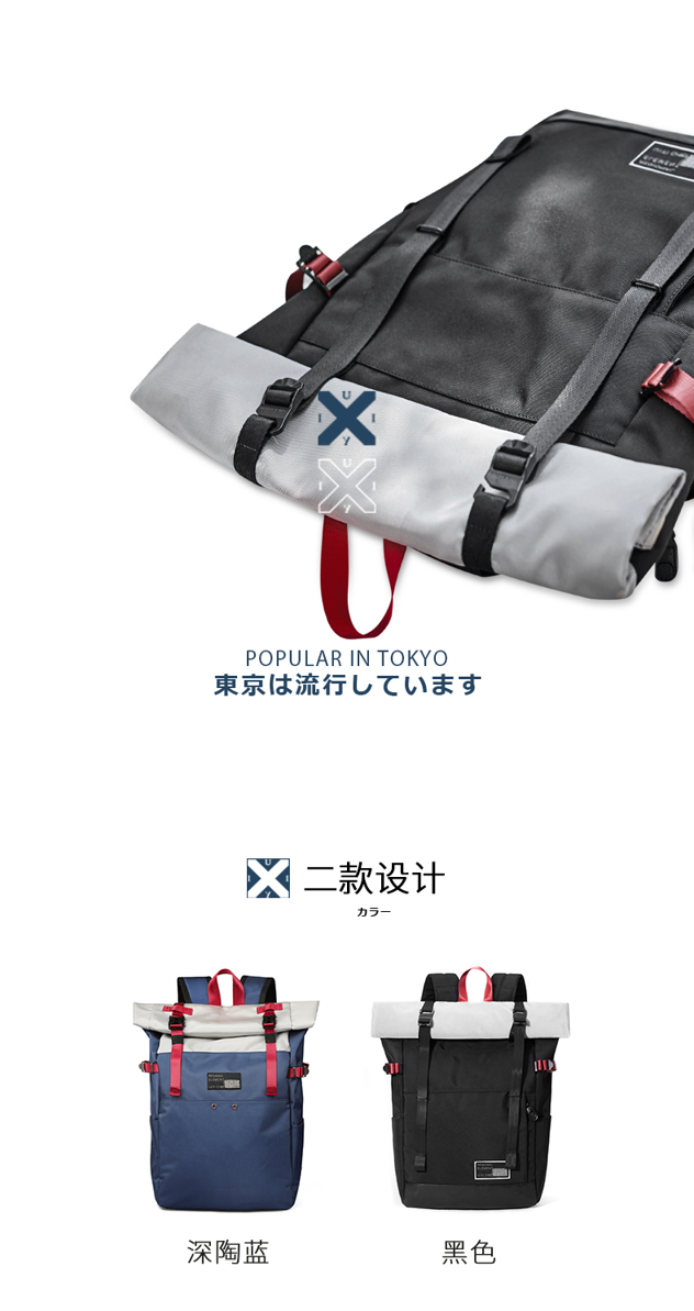 细节上:袋口可折叠或卷起,袋口处加设暗扣,增强防盗功能强,后侧隐藏式拉链,可直通主袋,侧背时取物方便。