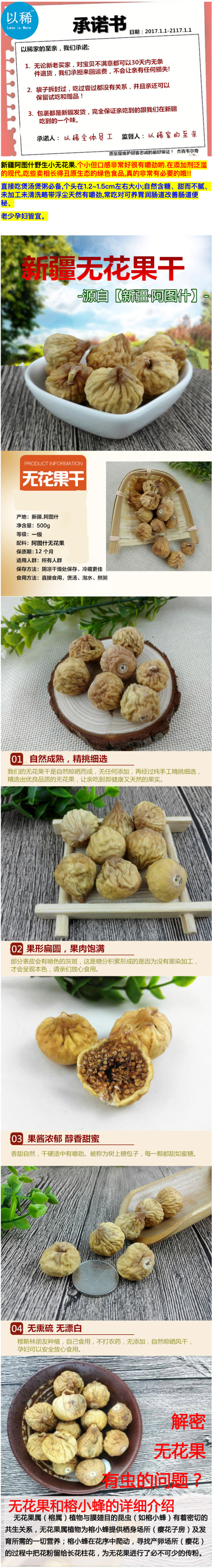 这款新疆阿图什野生小无花果干,产地是新疆·阿图什,由穆斯林朋友种植,不打农药,没有熏硫、漂白,没有任何化学添加,等其自然成熟后,在经过自然晾晒风干而成,孕妇可以安全放心食用。