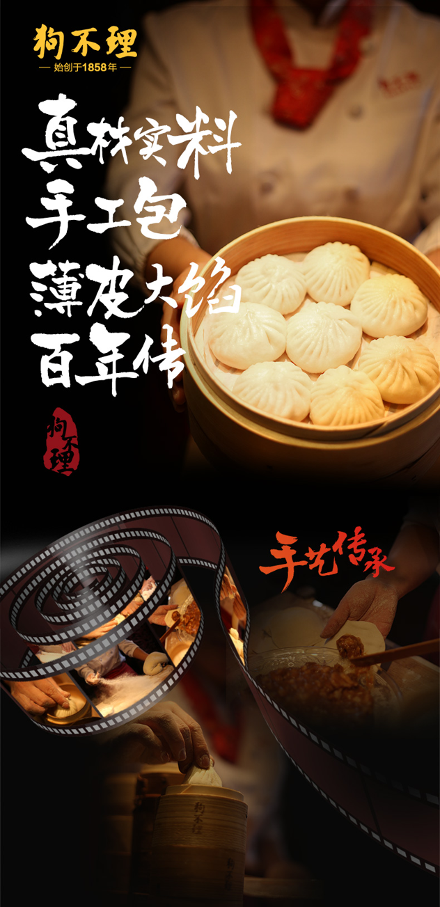 狗不理包子是天津市中国传统风味小吃,始创于公元1858年(清朝咸丰年间),为“天津三绝”之首,是中华老字号之一。这款经典手工猪肉包,采用生态猪肉、莱芜姜、宝坻鸡腿葱、小麦粉、酿造酱油、葱、料酒、食用盐、鸡精等制作而成,营养丰富,味道鲜美。规格:420g/袋。