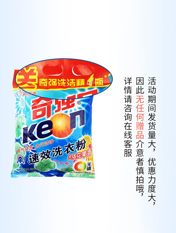 天猫keon奇强南风专卖店39.9元,可领20元优惠券,实付19.9元到手,是正价45.9元的4.3折;每袋不到7块钱!官方正品!26年品质保障! 活氧去渍,低泡易漂,无磷环保~承包家庭一年的用量!赠运费险领券链接点此