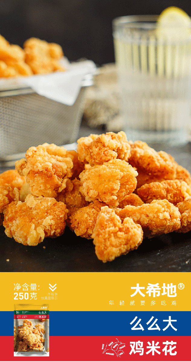天猫大希地旗舰店,8月17-19日 天猫17吃货节,¥59元 吃货狂欢价,-10元 下单立减,-10元优惠券,=39元 到手价,第二件29元,拍两件实付68元到手,单件250g*4袋,拍两份共到手8袋4斤。精选自有农场生态养殖鸡胸肉,鸡肉细腻,口感不柴;并经过秘制酱料腌制入味,鸡米花金黄酥脆,颗颗饱满,下过油三分钟即可食用,制作简单方便。规格:250g/袋。