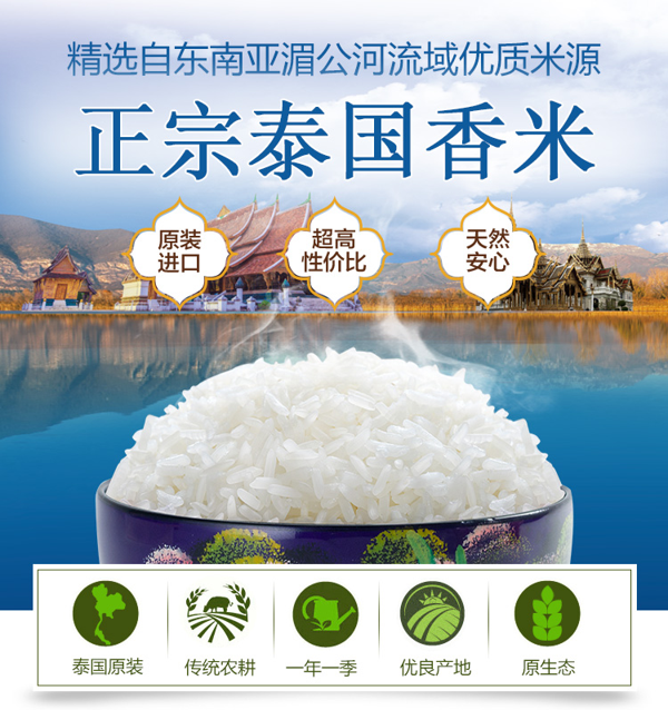 这款王家粮仓的泰国长粒香米,是泰国原装进口的,采用最原始的耕作方式,一年只种一季,保证土壤肥沃,坚守米的良好品质; 真空包装,内层厚实,能牢牢锁住泰国香米的原始高品质,还能防水防潮,提高香米储存时间。