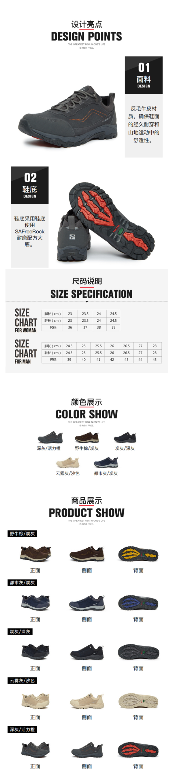 这款探路者户外徒步鞋,是2016年的旧款,搭载了多项探路者的科技。系带款,能适应各种脚型;低帮设计,虽然不能保护脚踝,但是轻便,更适合城市日常,或短途的户外徒步;