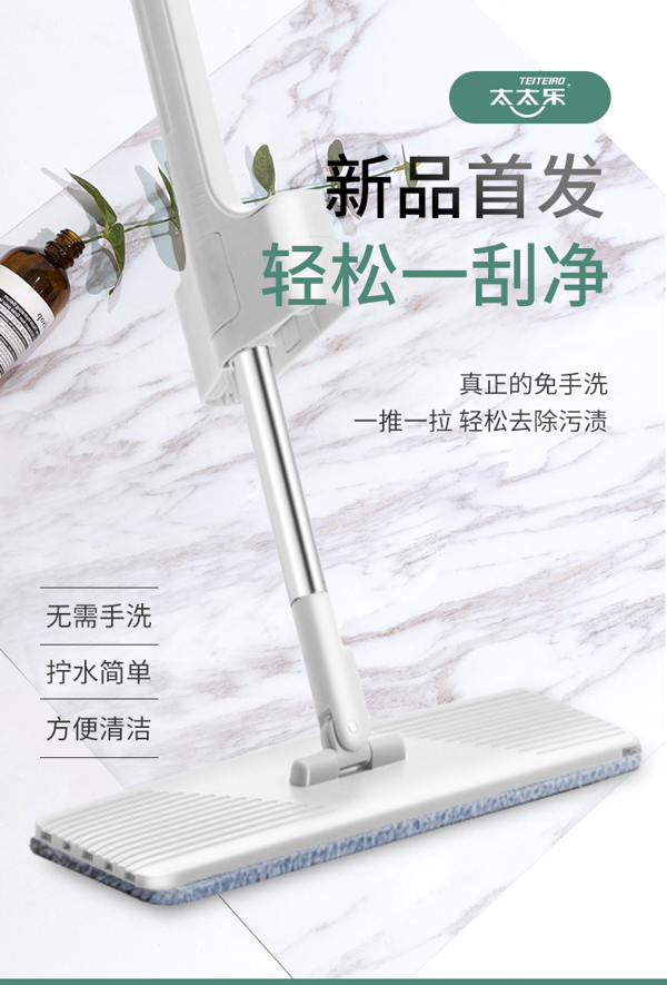 这款太太乐 免手洗平板拖把,无需手洗,新升级洗脱一体,水渍不外溅拖地不掉毛,360°旋转清洁,干湿两用,各种板面均适用,双清洗口,可移动刮口,挤水去污更轻松。