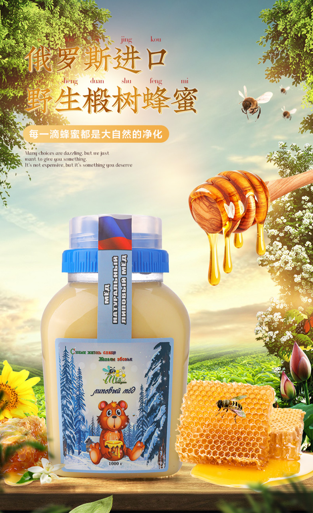 西伯利亚野生椴树蜜,样子完全不一样,不是琥珀色,在常温呈现出乳白色,西伯利亚天寒地冻,一年产量很小,椴树200年树龄,每年六七月份盛产,椴花蜜色泽晶莹,色为浅琥珀虚、清热补中、解毒润燥之功效,有一定的镇静作用,是非常好的补品。