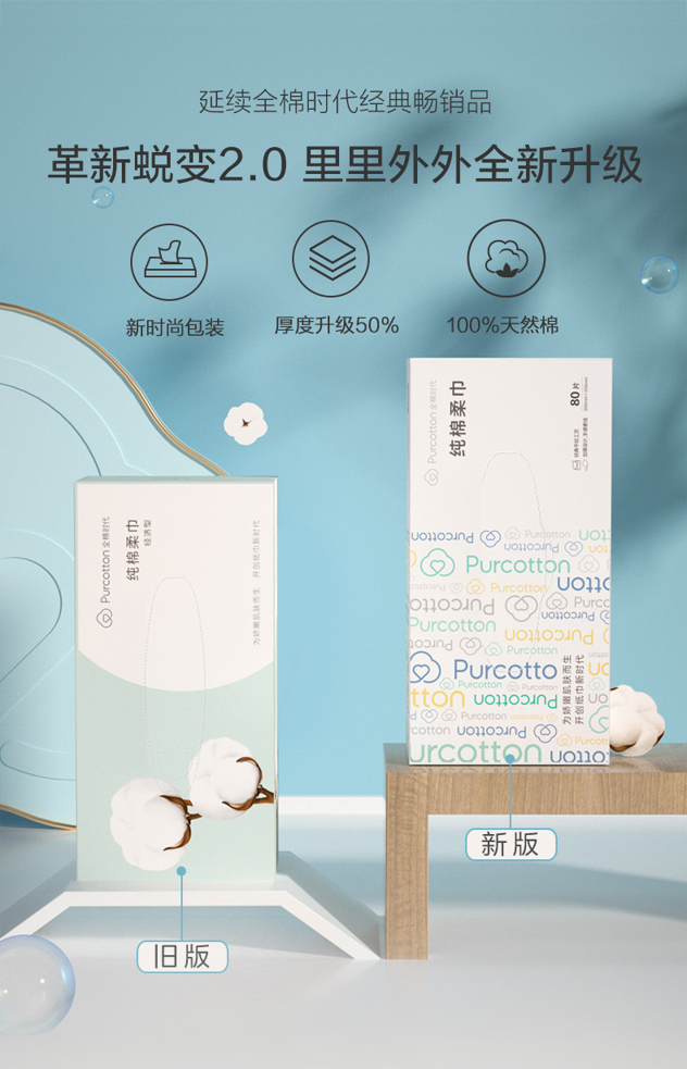 这款王牌产品"纯棉柔巾",和市场上常见的木浆制纸巾遇水就烂不同,纯棉柔巾可以干湿两用,反复揉搓不变形、也不会掉屑,可以当卸妆棉或者毛巾用,还可以作为一次性毛巾给宝宝洗PP用,用完就扔方便又卫生,因为用途很广,所以回头客还是很多的。