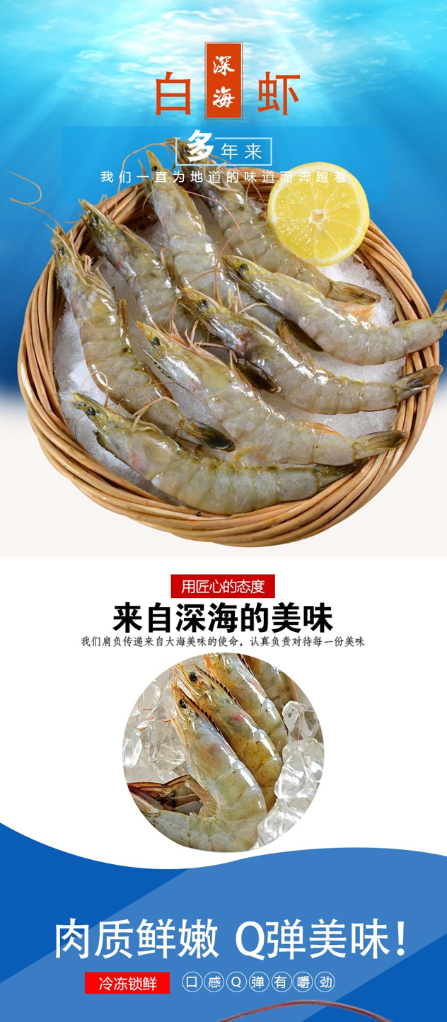 青岛野生海捕大虾,在海上捕捞后,直接在船上新鲜活冻,锁住新鲜,营养不流失,煮熟后缩水少,肉质紧实Q弹,有嚼劲,适合用来做各种大菜,营养又美味。